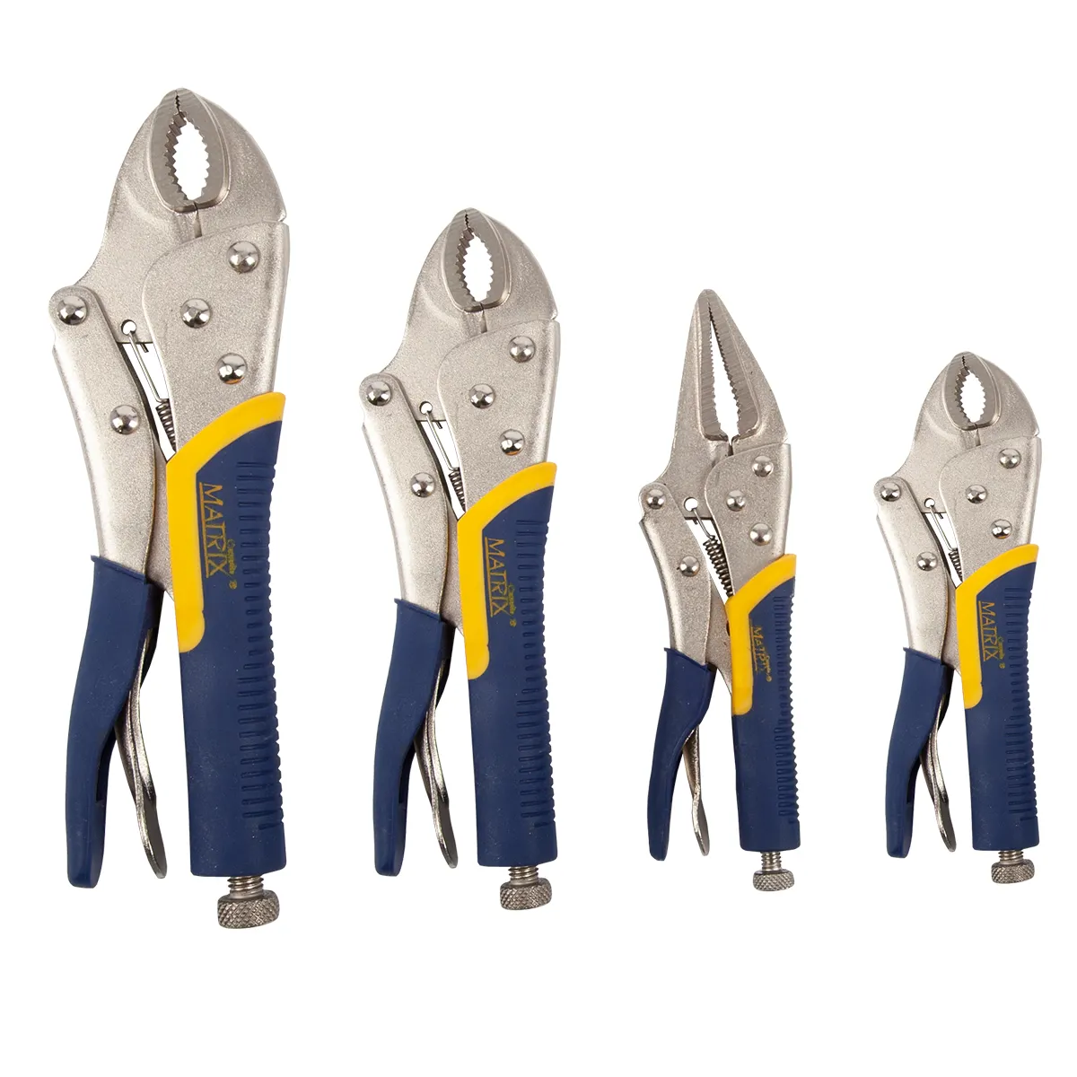 - Set includes: (1) 5in curved jaw locking pliers | (1) 6in long nose locking pliers | (1) 7in curved jaw locking pliers | (1) 10in curved jaw locking plier.